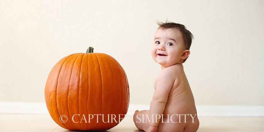 Sometimes cute is fun. This sort of thing I will do on occasion. I’m not a ‘prop’ photographer, but this client is a regular and I’m not for sure if you can consider a pumpkin a prop. Or maybe it really is. By definition, a prop is a portable object other than furniture or costumes used on the set of a play or movie. One can assume this applies to a photograph, too. So okay…I guess this is indeed a prop. Well, if you have been around the blog lately, you will know that I am very anti props in photos. I think they are very distracting and frankly, I don’t like all the fuss. I want to keep the photographs simple and focused on the subject or subjects. However, for this momma, who already had pumpkins outside for decor and I knew I could still keep the image clean and classic…even with the pumpkin. So, in this case, I agreed that it could be done very tastefully and I honored the client’s request. I reserve the right to say yes or no to a prop on occasion…99% of the time I will not allow…but like I said, if I can do it well, then I will honor the request. But please discuss with me prior to our session. I don’t want you buying a bunch of stuff, it not getting used and you being disappointed. That is the very last thing I would ever want, but I am also well past the days when I compromise my style of photography just for the sake of a photo. That is the great thing about photography. There is a photographer for you. That may or may not be me. You have to find a photographer whose portfolio reflects the types of images you really like AND would want for your family. Then hire them! 🙂